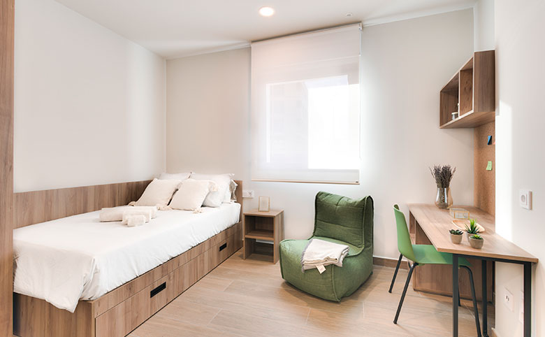 Livensa Living Granada Fuentenueva combines comfort and community. With fully equipped private studios, complete kitchens, and en-suite bathrooms, plus shared amenities like a swimming pool, gym, cinema, library, and rooftop terrace, it’s designed to support both academic focus and social connection.