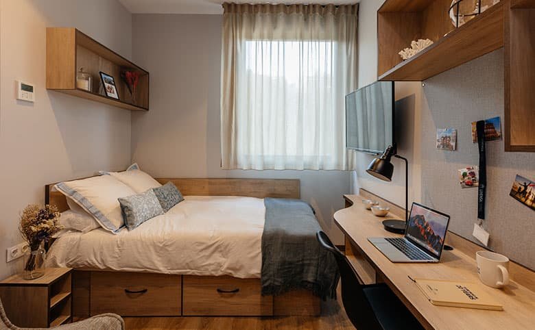 Livensa Living Pamplona combines comfort and community. With fully furnished private studios, complete kitchens, and en-suite bathrooms, plus shared amenities like a gym, cinema, library, study rooms, and game areas, it’s designed to support both academic focus and social connection.